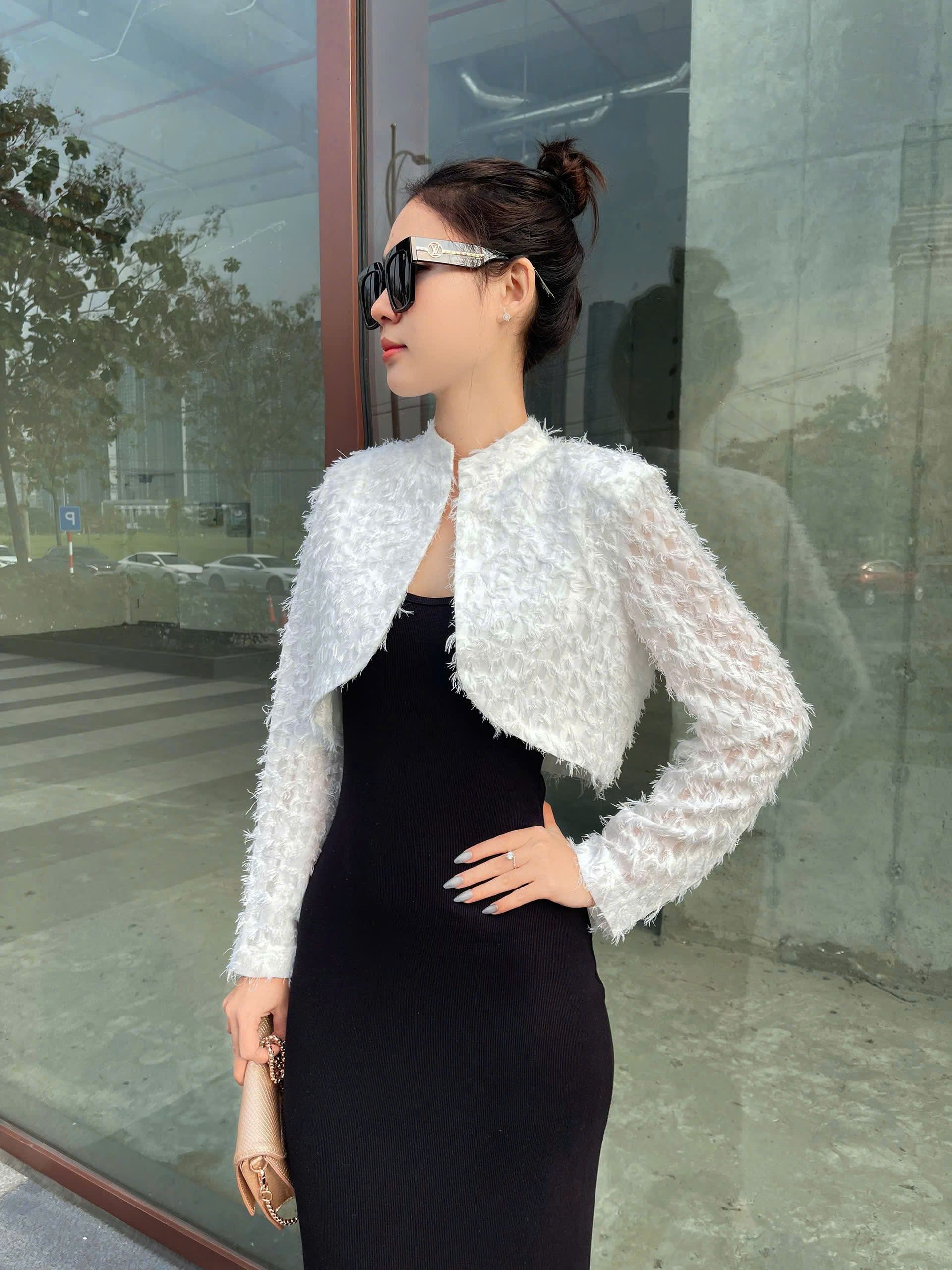• Áo khoác ngắn tay dài nút tàu sang trọng là thiết kế mang đậm nét thanh lịch pha chút cổ điển tinh tế. Điểm nhấn nút tàu được xử lý khéo léo, tạo nên vẻ đẹp sang trọng và khác biệt cho trang phục. Phom áo gọn gàng, tay dài giúp tôn dáng và dễ dàng phối cùng đầm hoặc quần áo công sở. Chất liệu cao cấp, đứng phom nhưng vẫn tạo cảm giác thoải mái khi mặc, phù hợp cho nhiều dịp như đi làm, gặp gỡ đối tác hay tham dự các sự kiện trang nhã.